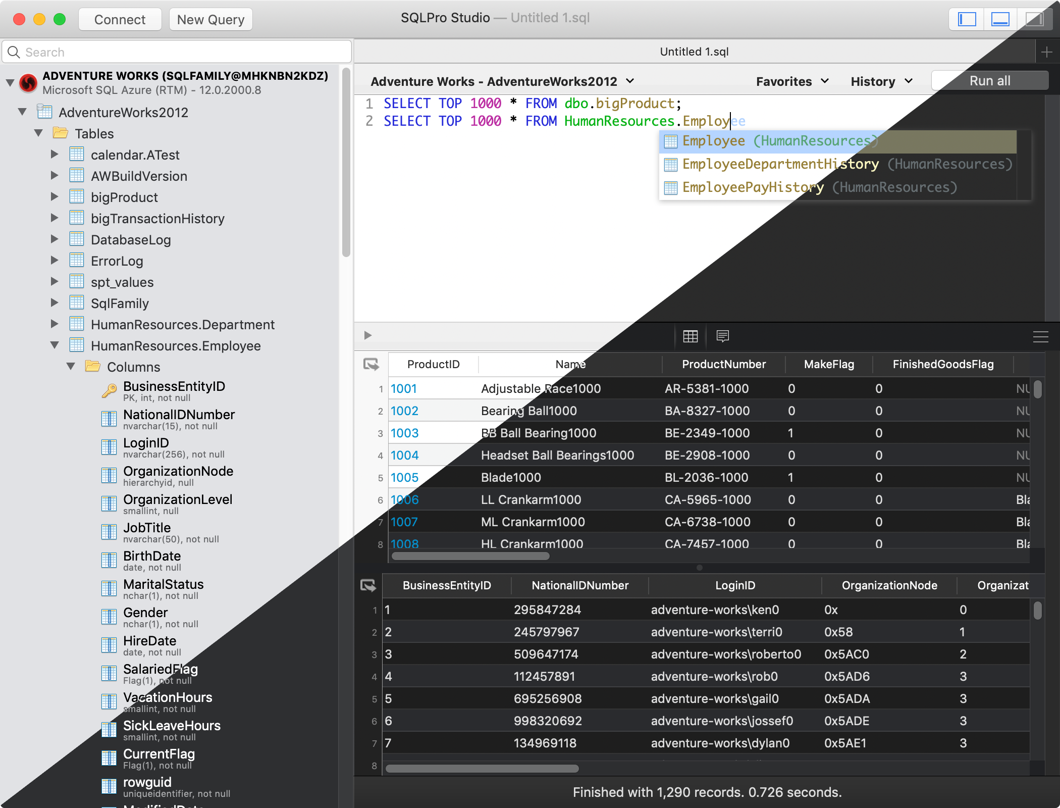SQLPro Studio has been independently developed and maintained by Hankinsoft Development, Inc since 2015. It is available on the Mac App Store, the iOS App Store, and the Microsoft Store, as well as a direct download from this website. Flexible pricing includes monthly and yearly subscriptions that work across all platforms, a one-time lifetime license, and a free year for students.